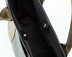 ポケットがたくさんあって、いろいろなものを収納できるツールトートバッグ。ハンドルはオリジナルのロゴ入りナイロンテープでより軽やかな印象です。表側の前後左右に計4つ、内側にも1つと合計5つのポケットが備わっており、お財布や携帯電話など、小物の小分けも綺麗に出来ます。男女ともにおすすめな、日常の普段使いに最適なスモールサイズ。小ぶりなサイズ感ですが収納力は抜群です。開口部には中身の飛び出しを防ぐスナップボタンを装備しています。