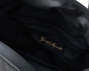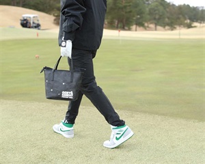 GB定番のトートPMサイズをラウンドバッグにご使用いただいているユーザー様も非常に多く、皆様のご意見を参考にアップデートさせて頂きました。カラス対策のために開口部にファスナーを付け開閉可能に。ファスナーを使わない場合はふたを内側に落とし込んで隠すこともできます。外側にはファスナーポケットを配し、内外にも複数のポケットを備えており、小物類をスッキリ収納できます。トートバッグ型なのでクラブハウス内でのご使用にも最適です。