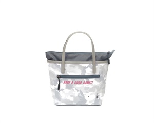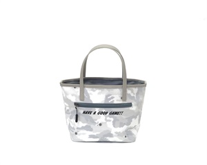 GB定番のトートPMサイズをラウンドバッグにご使用いただいているユーザー様も非常に多く、皆様のご意見を参考にアップデートさせて頂きました。カラス対策のために開口部にファスナーを付け開閉可能に。ファスナーを使わない場合はふたを内側に落とし込んで隠すこともできます。外側にはファスナーポケットを配し、内外にも複数のポケットを備えており、小物類をスッキリ収納できます。トートバッグ型なのでクラブハウス内でのご使用にも最適です。