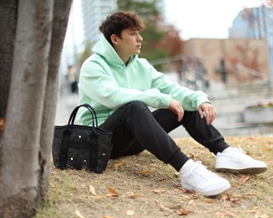 ポケットがたくさんあって、いろいろなものを収納できるツールトートバッグ。ハンドルはオリジナルのロゴ入りナイロンテープでより軽やかな印象です。表側の前後左右に計4つ、内側にも1つと合計5つのポケットが備わっており、お財布や携帯電話など、小物の小分けも綺麗に出来ます。男女ともにおすすめな、日常の普段使いに最適なスモールサイズ。小ぶりなサイズ感ですが収納力は抜群です。開口部には中身の飛び出しを防ぐスナップボタンを装備しています。