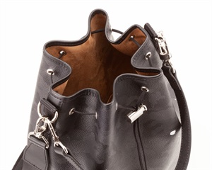 手触りの良いマイクロスエードを内装に使用し、バッグ全体にハリ感を持たせました。ショートハンドルはレザーハンドルへとアップデートしており、より一層高級感を引き立たせてくれます。