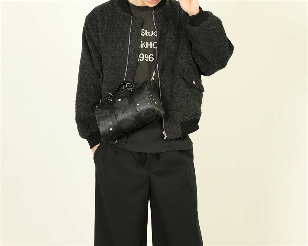 光の当たり方で異なった見え方をする絶妙なバランスのカモフラージュ柄が特徴。深い黒のグラデーションが立体感を醸し出します。