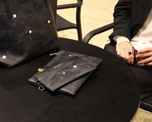 厚みが薄い分、小さいバッグにもなんなく収納できます。スーツやジャケットの内ポケットに入れて持ち歩く事も可能。外側にはカードポケットが8カ所とお札を折らずに収納できるポケットを配置。ファスナー付き収納部にもID用カードポケットを1カ所備えています。
